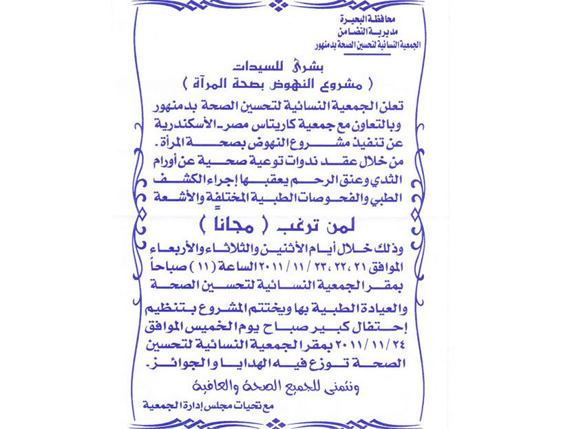 نبذة عن تاريخ الجمعية النسائية لتحسين الصحة بدمنهور